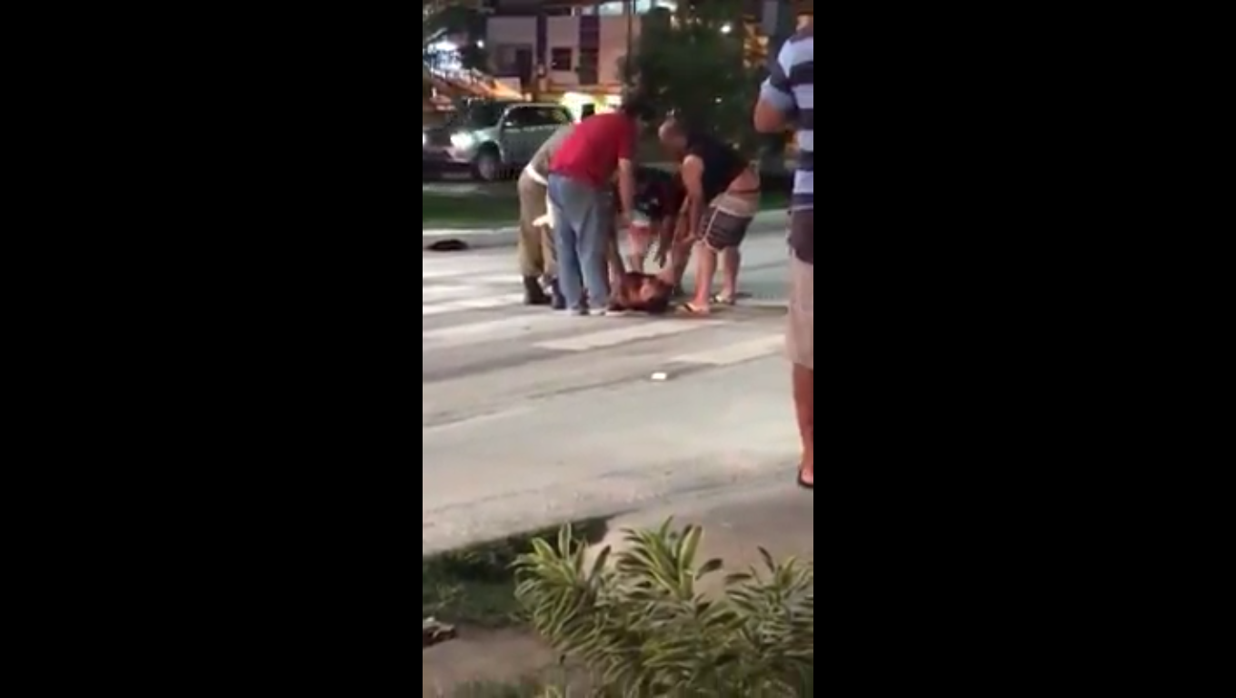 Ele atrapalhou o trânsito na contramão dos carros e só parou quando foi segurado por populares e o segurança de uma farmácia