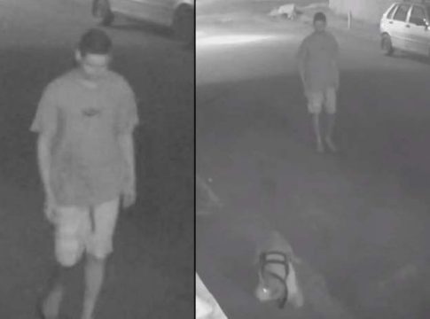Uma câmera de segurança flagrou o momento exato em que um jovem soltou um cachorro da raça Pitbull, em São Pedro da Aldeia, próximo a rodoviária, para atacar um gato que estava passando pela rua, no dia 16, por volta das 22h.