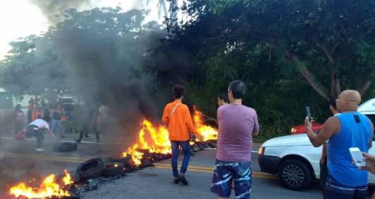 Manifestantes atearam fogo em pneus e galhos, interditando o trânsito nas duas pistas na BR-356 por cerca de uma hora