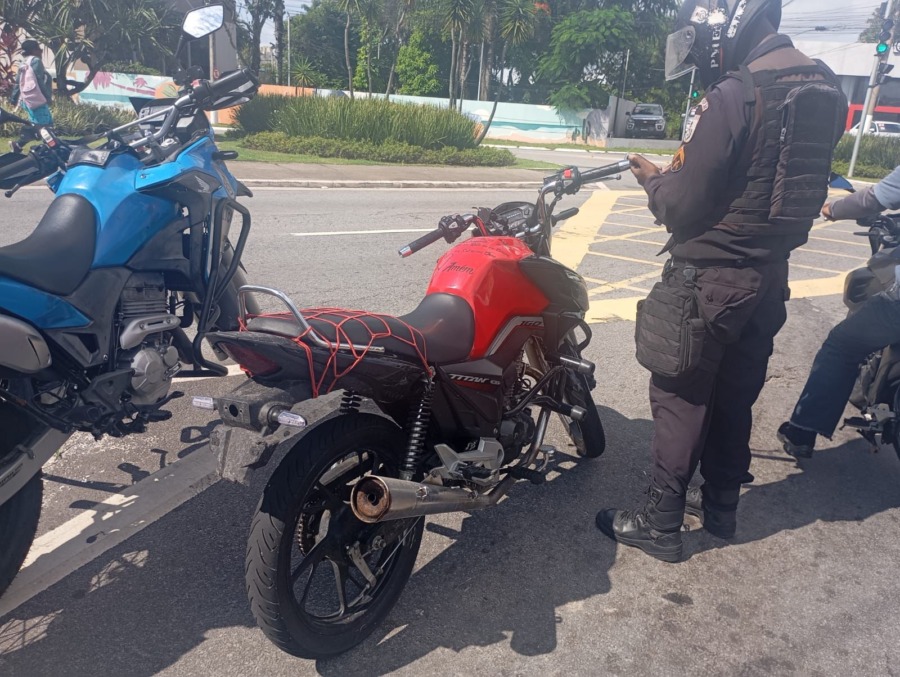 A equipe avistou o motociclista parado em um semáforo, conduzindo uma Honda Titan vermelha sem placa. Ao realizar a consulta no sistema, não foram encontrados registros criminais em nome do condutor. Questionado sobre a ausência da placa, o motociclista alegou que a motocicleta havia sido roubada.