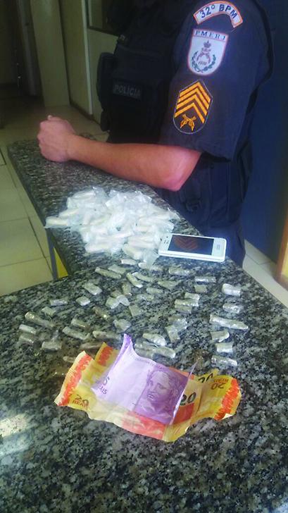 Dentro do imóvel foram encontradas 46 buchas de maconha e 29 pinos de cocaína