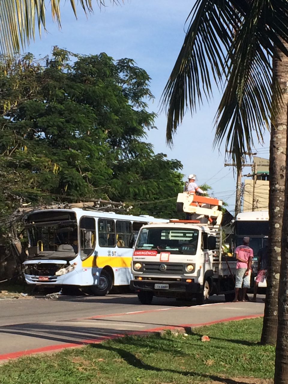 Um ônibus escolar da Rota 40, que transporta alunos do  Colégio Oscar Cordeiro, no bairro Ajuda, bateu em um poste de energia elétrica na Estrada do Imburo, bairro Ajuda de Baixo. A colisão aconteceu na tarde dessa quinta-feira (08). Não havia alunos e profissionais da escola no veículo.