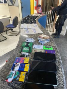 No local, foram encontrados e apreendidos 35 gramas de maconha, 94 gramas de cocaína, R$ 136 em dinheiro e quatro celulares.