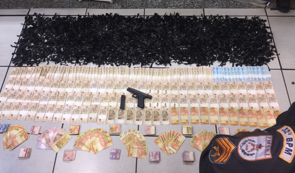 O menor foi apreendido em casa, dentro do seu quarto. No local, a polícia encontrou 3.200 papelotes de cocaína, uma pistola calibre 09 milímetros com um carregador e sete munições intactas, R$ 19. 034,00 (dezenove mil e trinta e quatro reais) em espécie e varias anotações da contabilidade do tráfico de drogas.