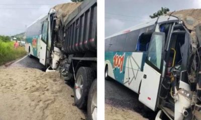 Um acidente entre um ônibus da empresa 1001 e um caminhão carregado de areia resultou na morte de dois homens na tarde desta sexta-feira, 03, na...