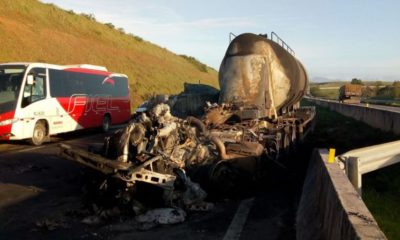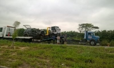 O acidente aconteceu em um trecho duplicado, traçado em reta. Destroços do caminhão ficaram espalhados pela pista. Uma carreta carregada de cimento pegou fogo na madrugada...
