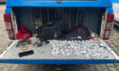 Em uma operação realizada na tarde de segunda-feira (30), agentes da Polícia Militar apreenderam uma grande quantidade de drogas, duas armas de fogo e prenderam um...