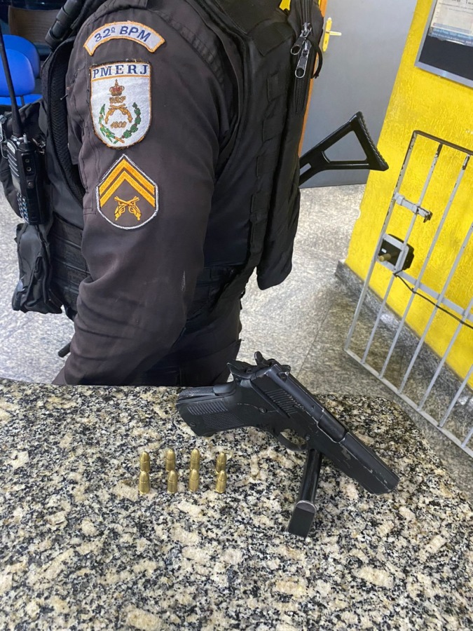 A Polícia Militar (PM) apreendeu uma pistola calibre 9mm, carregador e oito munições após uma tentativa de assalto, no fim da noite desta terça-feira (26), no Alto dos Cajueiros, em Macaé.