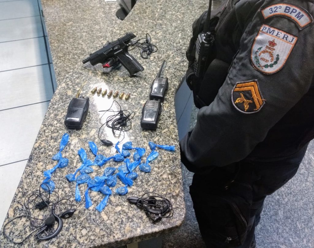 A Polícia Militar (PM) apreendeu uma pistola 9mm com carregador e sete munições intactas, além de três radiocomunicadores na noite desta terça-feira (7), na Nova Holanda, em Macaé.
