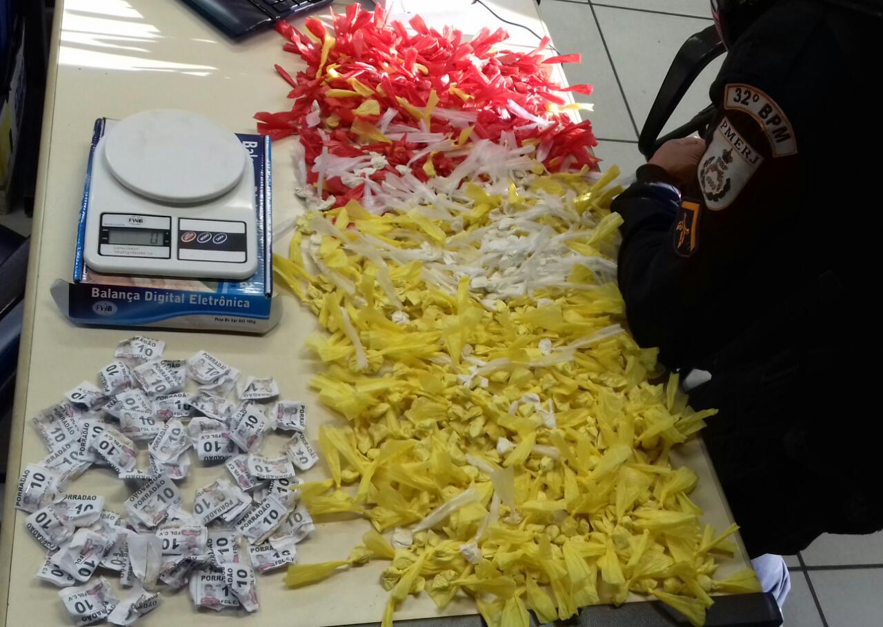Policias Militares das equipes do Grupamento de Ações Táticas (GAT) e do Serviço Reservado (P2) realizaram a apreensão de 893 papelotes de cocaína e uma balança de precisão na Favela da Linha, em Macaé. A ação foi deflagrada após denúncias anônimas dando conta de que traficantes de uma facção criminosa estariam escondendo drogas no pátio da empresa Enge, na Rua José Soares Pereira. Após buscas na região, as equipes encontraram o material na laje da empresa. Ninguém foi preso.