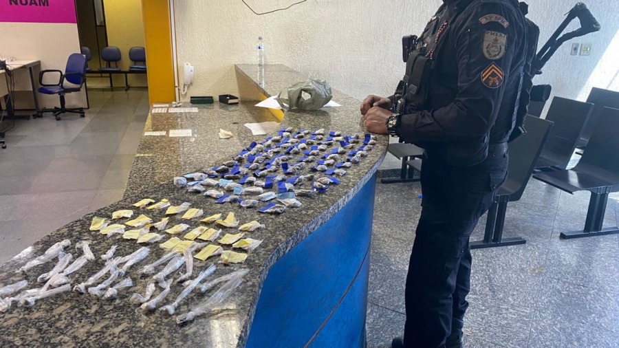 A Polícia Militar apreendeu uma carga de drogas na Avenida Fábio Franco, na Favela da Linha, em Macaé, neste domingo (28).