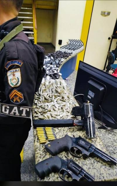 No final da tarde desta quinta-feira (5), policiais apreenderam drogas e armas no Morro da Cabocla, em Arraial do Cabo.
