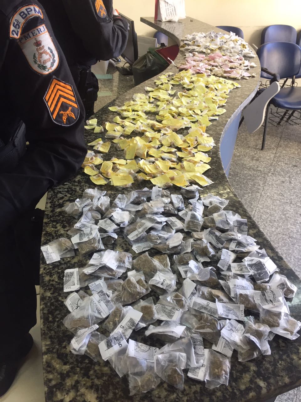Equipes do Grupamento de Ações Táticas (GAT) do 25º Batalhão de Polícia Militar realizaram a apreensão de 93 buchas de maconha, 119 pinos de cocaína, 97 sacolés de cocaína e 301 pedras de crack na manhã de ontem (4), em Cabo Frio, na Região dos Lagos. A apreensão ocorreu durante uma incursão realizada na comunidade Beco do Rato. Segundo a PM, o material entorpecente foi encontrado dentro de um tubo de PVC, que estava enterrado em um terreno baldio. Ninguém foi preso. As drogas foram levadas para a 126ª Delegacia Policial de Cabo Frio (126ª DP), onde a ocorrência foi registrada.
