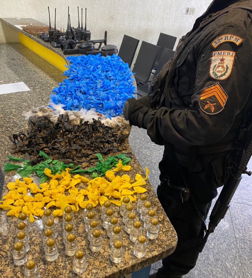 Equipes da Polícia Militar (PM) realizaram a apreensão de uma farta quantidade de drogas e munições, nesta sexta-feira (19),na comunidade Nova Holanda, em Macaé .