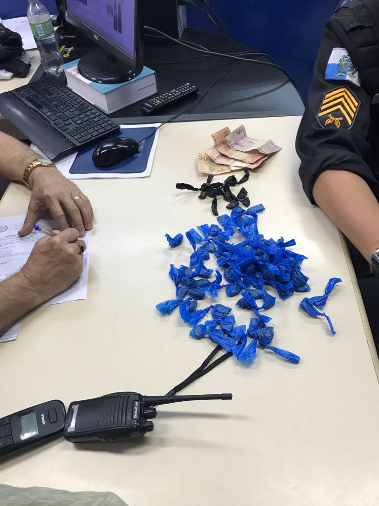 De acordo com a polícia, o suspeito correu para o interior de um bar, na Travessa 18, ao perceber que seria abordado. Após uma varredura no local, a polícia encontrou a sacola que Eduardo segurava na lixeira do banheiro. Dentro dela havia 59 buchas de maconha, nove sacolés de cocaína e um rádio comunicador.