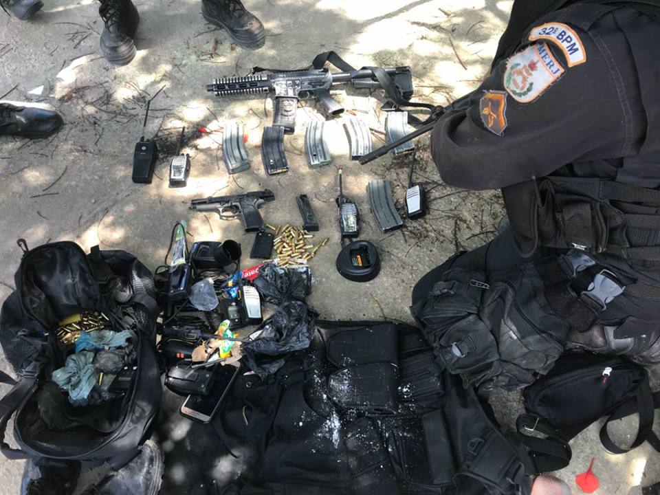 No Lagomar, foram apreendidos pela PM, um fuzil 5,56 com cinco carregadores, uma pistola com um carregador, 165 munições de calibre 5,56, 307 munições de calibre 9mm, nove rádios transmissores, quatro baterias de rádio transmissor , cinco carregadores de rádio transmissor, uma capa de colete, um coturno, uma calça tática preta, um coldre, uma faca rambo e cinco celulares.