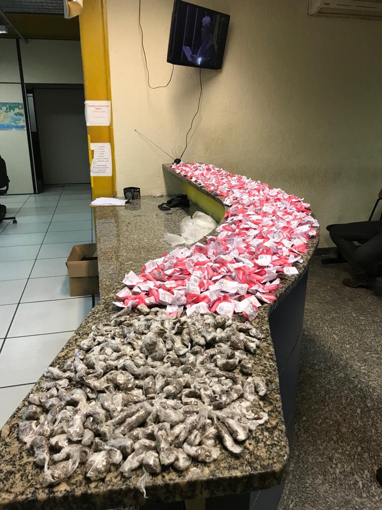 Em um terreno baldio foram arrecadadas 225 buchas de maconha e 927 pinos de cocaína.