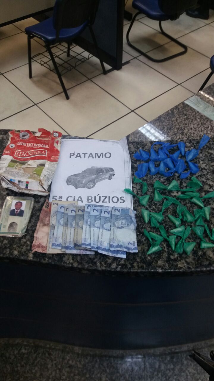 Pouco tempo depois, a equipe do Grupamento de Ações Táticas (GAT) da PM, prendeu Adílson Pessanha Maciel, de 36 anos, no Centro. Ele estava com 109 pinos de cocaína e confessou aos agentes que o material entorpecente seria vendido na localidade.