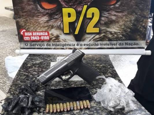 A ação foi deflagrada pela equipe do Serviço Reservado (P2), após o levantamento de informações privilegiadas que levaram os militares até o paradeiro do suspeito. Com ele, foi apreendida uma pistola calibre 9mm, munições,  além de 17 cápsulas de cocaína e 16 trouxinhas de maconha.
