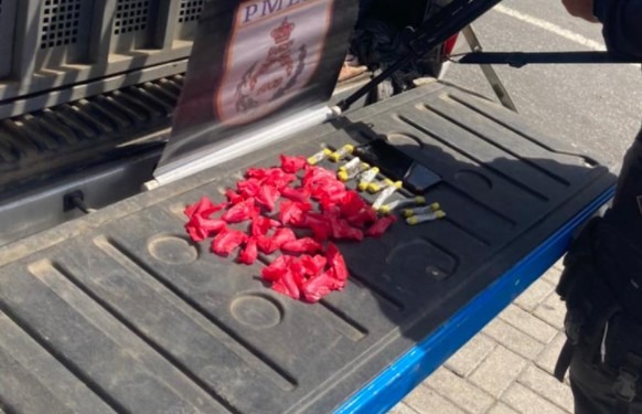 Em diligência no local, os agentes encontraram o proprietário da residência, que afirmou que o imóvel estava desocupado e permitiu a entrada dos policiais. Porém, o acusado foi flagrado no interior da casa, deitado em um colchão. Ele admitiu ser traficante na Praça do Cova e que as drogas estavam atrás de um botijão de gás, onde foi arrecadado 30 pinos de cocaína e dez buchas de maconha.
