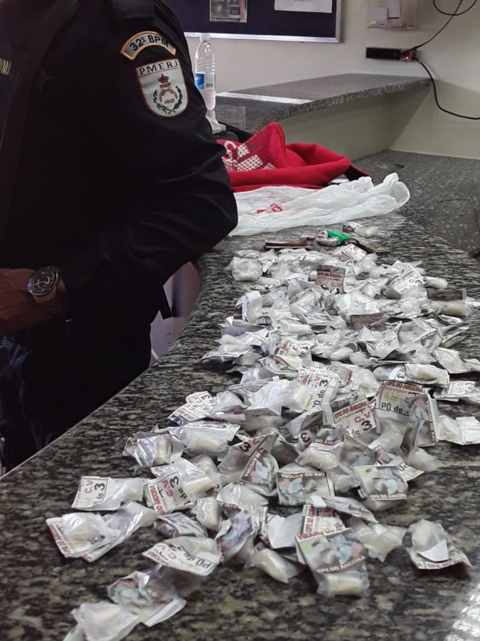 Com ele, foram apreendidas quatro buchas de maconha e 153 pinos de cocaína. O material entorpecente estava dentro de uma mochila.