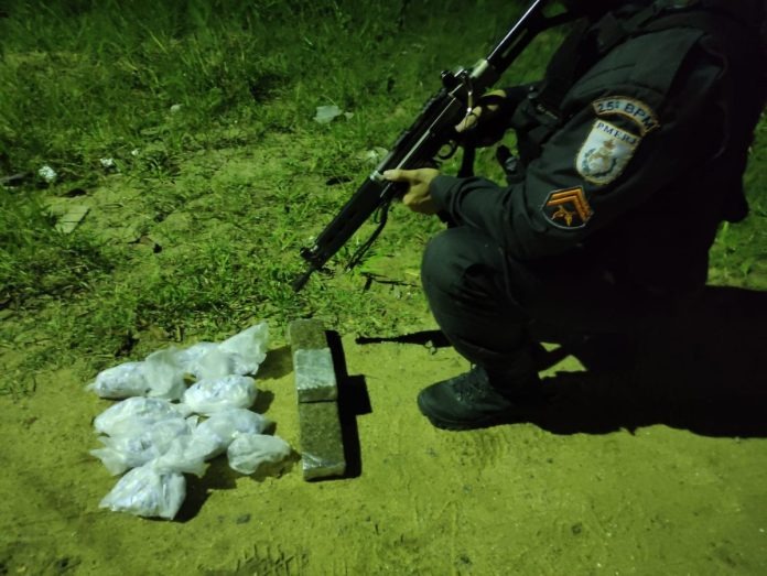 A guarnição, então, realizou a abordagem, encontrando 350 pinos de cocaína e aproximadamente 2 kg de maconha na sacola. Diante dos fatos, a equipe procedeu à 126° DP onde o acusado ficou preso no ART. 33 da lei 11.343/06. – Tráfico de drogas.
