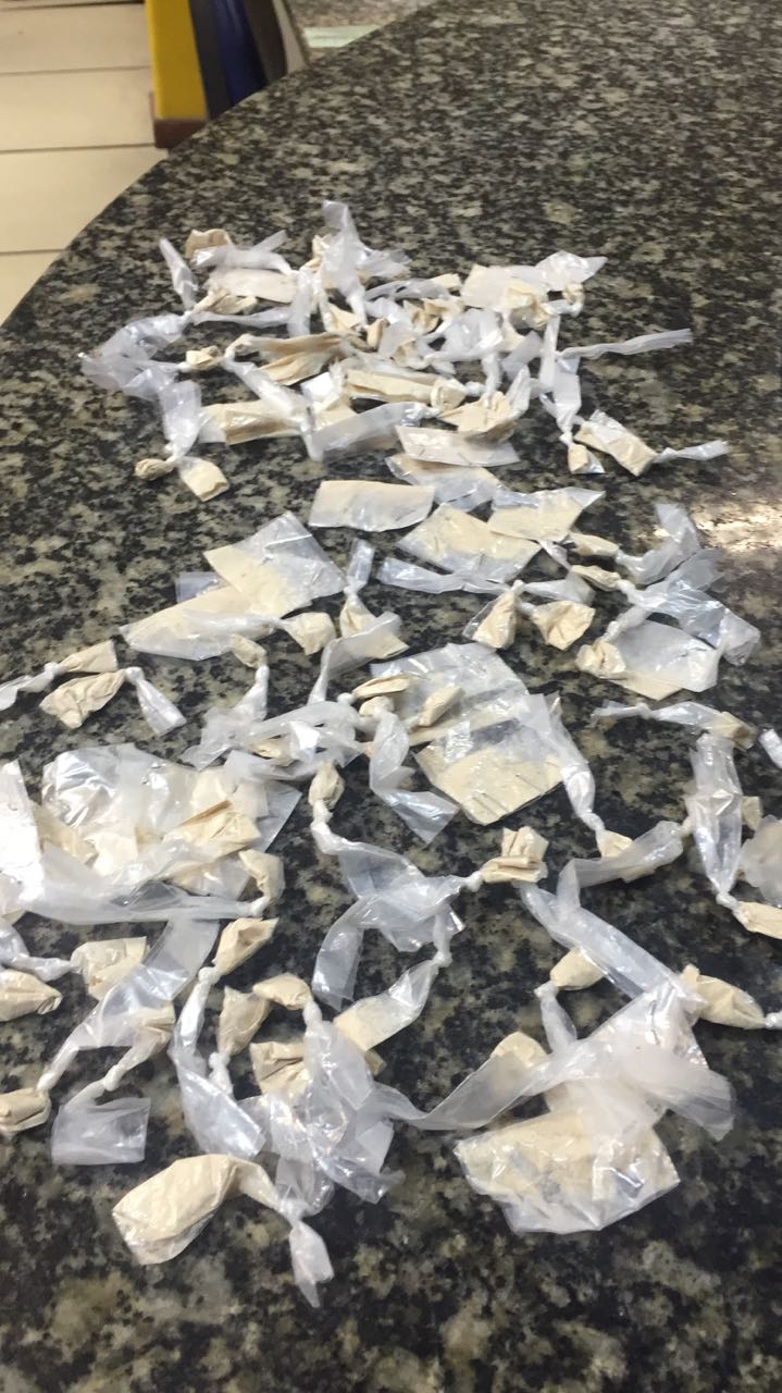 Após incursionarem a localidade, os agentes detiveram na Rua A, Fernandes Alves dos Santos, conhecido como Dunga, de 26 anos. Na casa dele foram encontrados 100 papelotes de cocaína. Segundo a PM, o suspeito já possui duas passagens pela polícia pelos crimes de porte ilegal de arma de fogo e roubo.