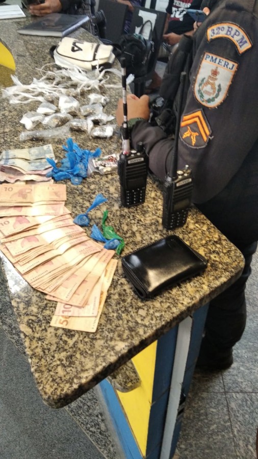 Com o trio, a polícia apreendeu 50 invólucros de maconha, quatro invólucros de cocaína, dois rádios comunicadores e R$ 388 em espécie. Os envolvidos foram levados para a 123ª Delegacia Policial (123ª DP), onde foram autuados e ficaram presos, aguardando transferência para o sistema penitenciário. O material apreendido foi apresentado à Polícia Civil.