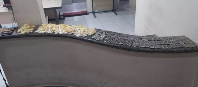 Após a estabilização da situação, os agentes realizaram buscas na área e encontraram uma mochila contendo 345 pinos de cocaína, 137 pedras de crack, 134 buchas de maconha, R$ 935 em espécie e nove munições de calibre 9mm.