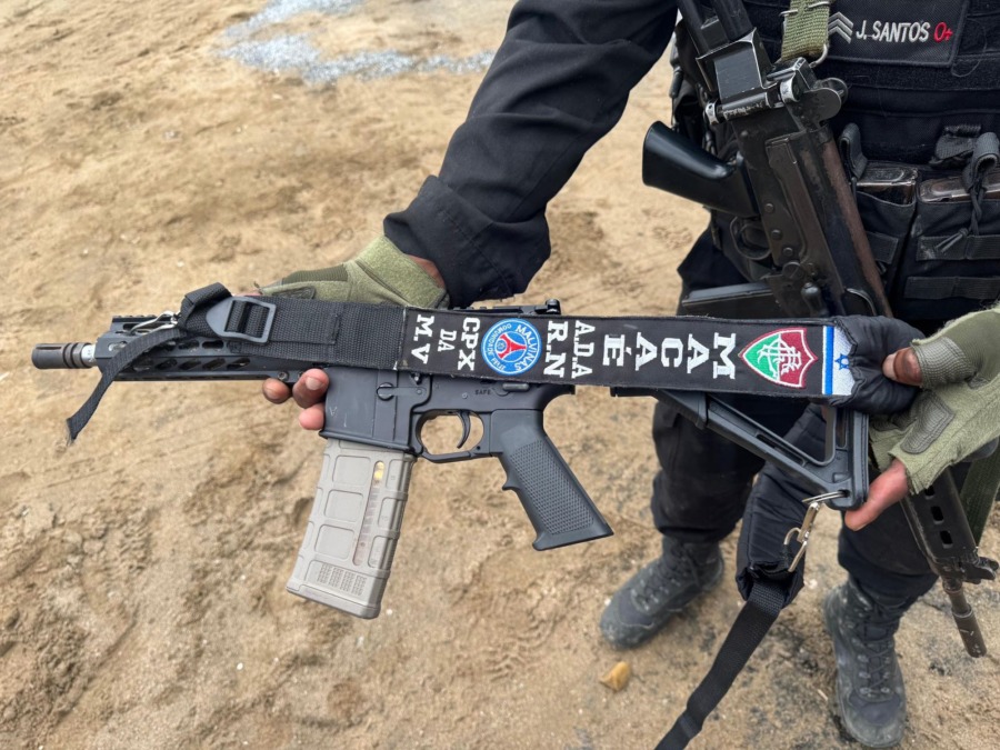 De acordo com a ocorrência, nada de ilícito foi encontrado na abordagem. No entanto, os policiais decidiram refazer o trajeto por onde o suspeito passou e assim encontraram o fuzil calibre 5.56 e uma sacola com drogas.