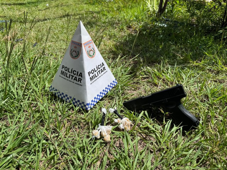 A Polícia Militar prendeu no último final de semana um homem considerado foragido da Justiça em Macaé. Ele foi capturado por agentes do 32º BPM no bairro São José do Barreto. No momento da prisão, a polícia encontrou também um simulacro de pistola e 24 pedras de crack.