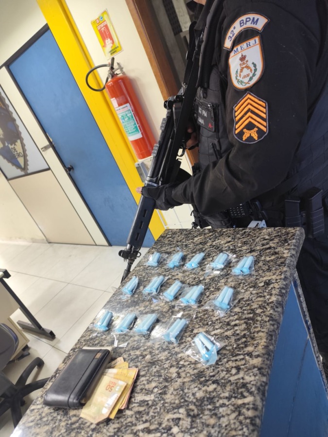 Em uma operação de rotina, policiais militares do 32º BPM prenderam um homem com 30 pinos de cocaína e R$ 150,00 em espécie, na tarde desta quinta-feira (7), em Rio das Ostras. A ação foi deflagrada durante patrulhamento na Estrada Velha de Rio Dourado. O suspeito, identificado com Lucian Souza Martins, foi abordado pelos agentes nas proximidades da Rua Alagoas, no bairro Cidade Praiana, conhecido pela presença de pontos de venda de entorpecentes.