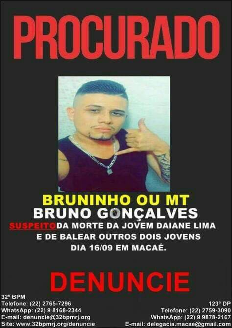 O delegado adjunto da 123ª Delegacia Policial de Macaé, Dr. Victor Azevedo pediu ontem (18) a prisão temporária de Valber Bruno Gonçalves. Ele é suspeito de atirar e matar uma jovem de 21 anos e ferir outras duas pessoas, na madrugada do último sábado (16), após uma discussão em frente à casa de shows Quenzas Hall, em Macaé.
