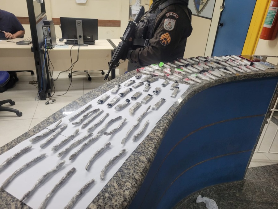 A Polícia Militar prendeu dois homens por tráfico de drogas e suspeita de envolvimento com a facção criminosa Comando Vermelho em Rio das Ostras. O caso foi registrado na Rua Andorinha, no bairro Liberdade. A operação teve início após os agentes receberam a informação de que duas pessoas estariam traficando no local.