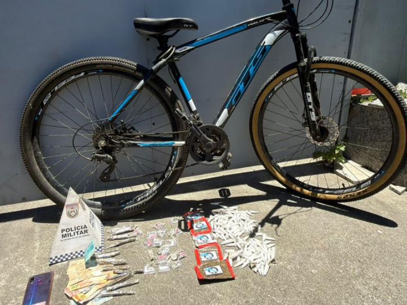 Realizando uma busca nas proximidades, os agentes conseguiram encontrar o local das denúncias, uma casa abandonada onde acharam 39 buchas de maconha e 126 cápsulas de cocaína escondidas na varanda, além 357 reais em dinheiro, 1 telefone celular e uma bicicleta.