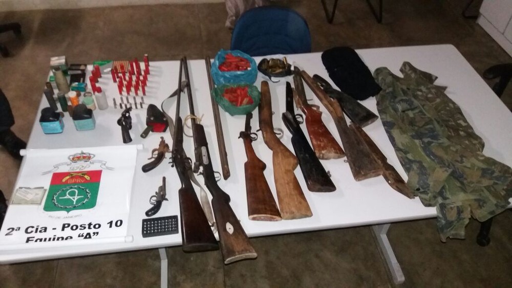De acordo BPRv, após a abordagem, o suspeito levou os policiais até uma mata onde ele escondia, e um revólver, uma pistola, quatro espingardas de caça, além de duas gandolas do exército e uma touca ninja. O suspeito foi conduzido até a 128ª Delegacia Policial de Rio das Ostras (128ª DP), onde foi autuado e ficou preso, aguardando transferência para o sistema prisional.