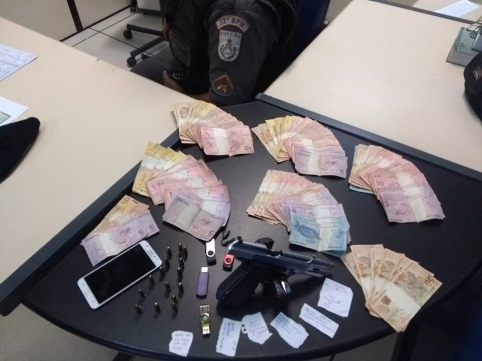 Homem é apontado pela polícia como gerente do tráfico da Nova Brasília. Com ele foram apreendidos uma arma, dinheiro, anotações e celulares.