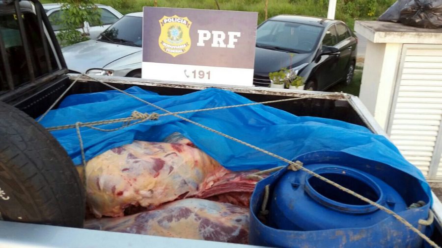 A mercadoria seria vendida para consumo em restaurantes. Segundo a PRF, policiais faziam uma blitz na altura do km 269, quando desconfiaram da atitude dos ocupantes de uma caminhonete e deram ordem de parada. Logo em seguida, perceberam que estava pingando sangue da caçamba do veículo. Quando tiraram a lona e abriram, viram diversos pedaços do corpo de um animal bovino, além de partes internas.