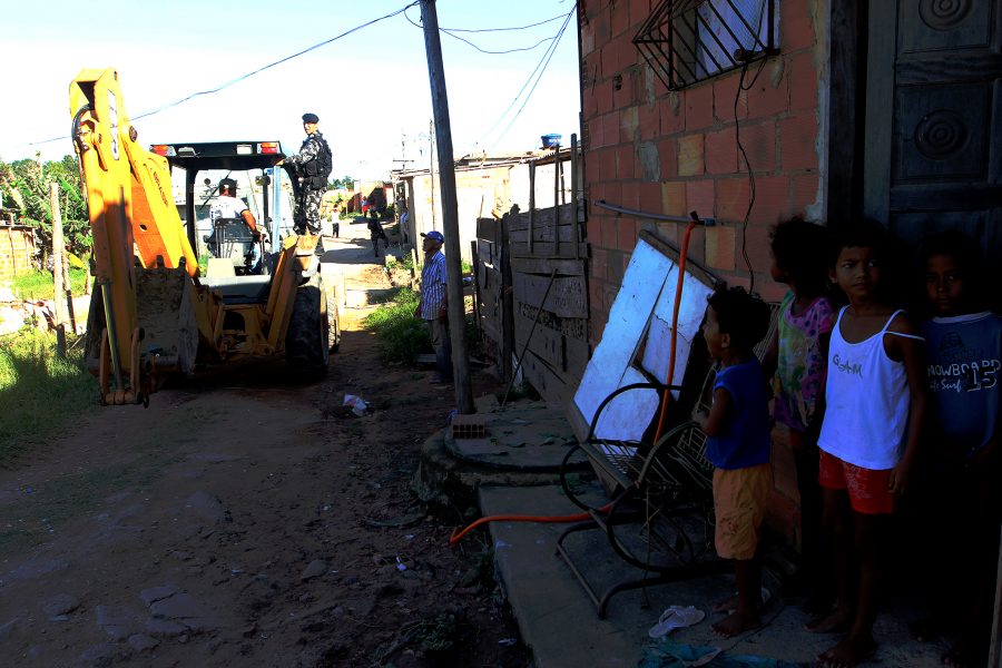 Quarenta casas que serviriam de reduto para traficantes são demolidas próximas ao bairro Lagomar, em Macaé