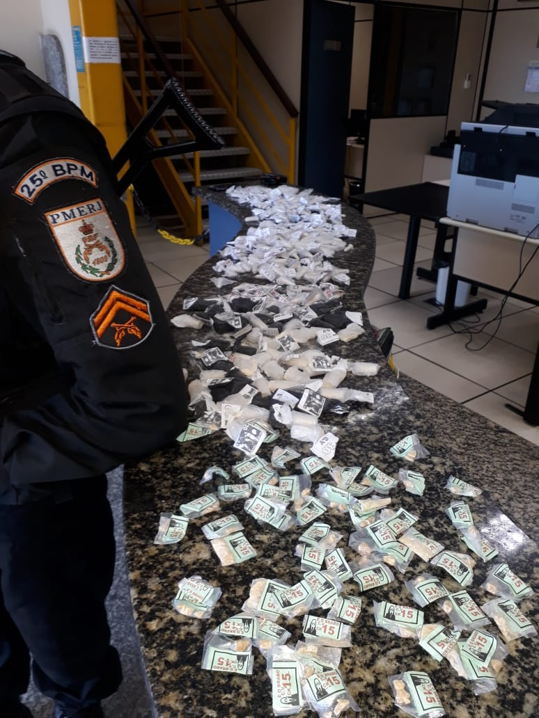 Com o envolvido, a PM apreendeu 300 pinos de cocaína, 60 pedras de crack e um radiocomunicador.