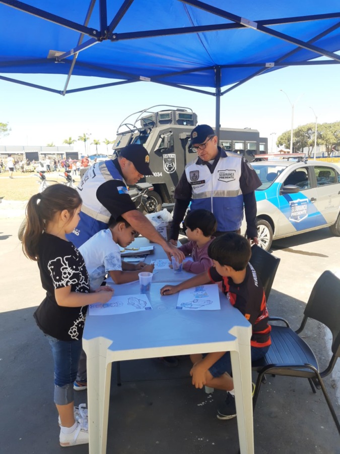 Os agentes do Segurança Presente Macaé realizaram apresentação da Operação Segurança Presente e tiveram a oportunidade de interagir com diversas crianças e adultos, sendo distribuídos caixinhas de giz de cera para colorir figuras de policiais e viaturas.