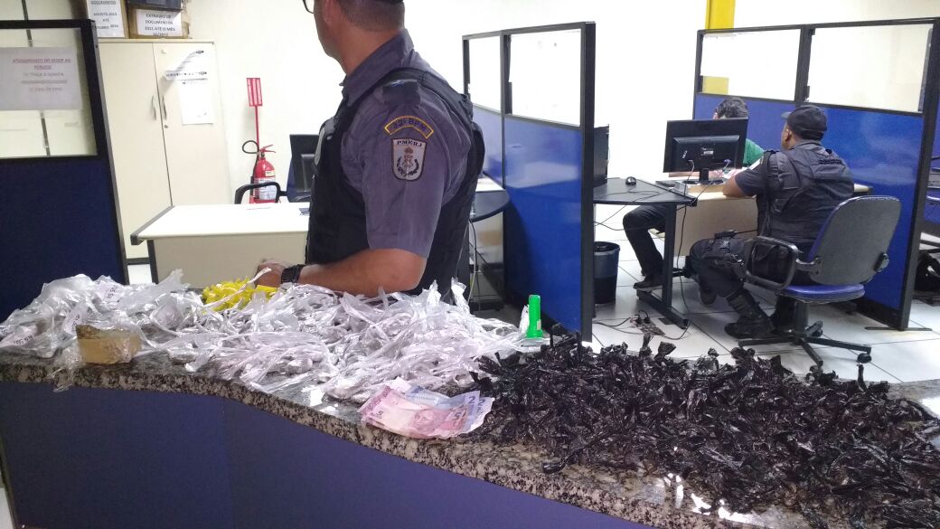 Um homem foi preso pela Polícia Militar (PM) sob a acusação de tráfico, na madrugada desta segunda (24), em Macaé. Paulo Henrique de Souza, de 22, anos, conhecido como “Dentinho”, estava comercializando drogas na Rua da Prosperidade, na comunidade Nova Holanda. Segundo a PM, ele tentou fugir ao notar a entrada da viatura na comunidade, mas foi capturado após cerco. Com ele foram arrecadados 323 sacolés de cocaína de R$ 25; 24 sacolés de maconha de R$50; 122 sacolés de maconha de R$10, 24 sacolés de maconha de R$5;, um pedaço de maconha, um saco contendo maconha esfarelada (totalizando 01 quilo e nove gramas) e R$30 em espécie. Ainda de acordo com a PM, o suspeito é apontado como “repositor” do tráfico de drogas na localidade. Paulo foi levado para a 123ª Delegacia Policial de Macaé (123ª DP), onde foi autuado no art.33 da Lei 11.343/08 e ficou detido, aguardando transferência para o sistema prisional.