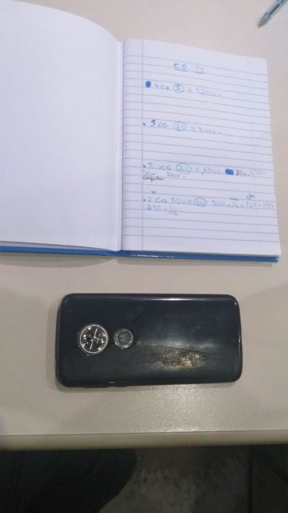 Com o envolvido, os agentes apreenderam um aparelho celular e um caderno com anotações do tráfico de drogas.