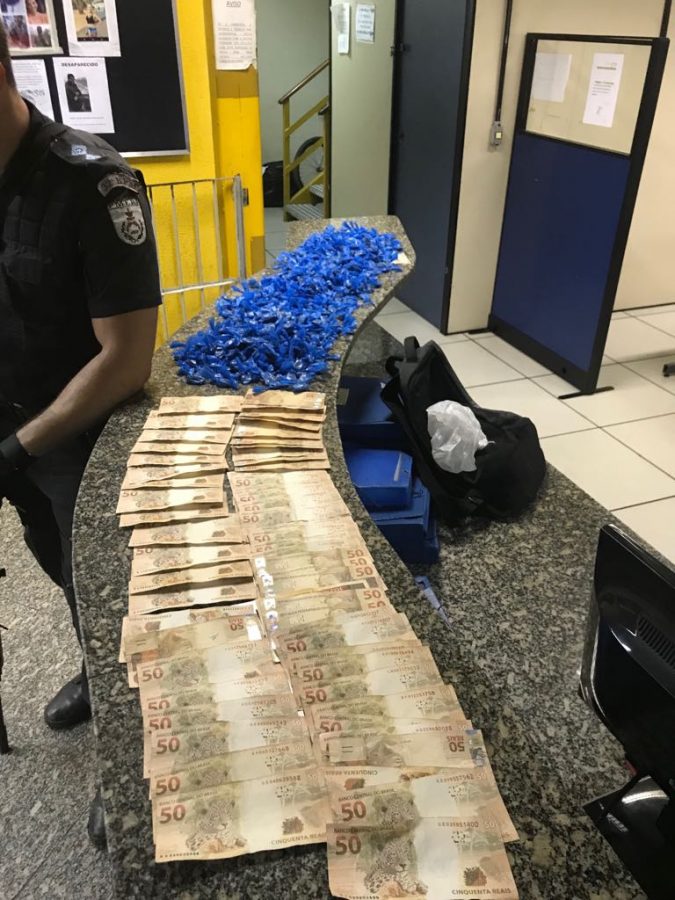Ainda de acordo com a PM, agentes o reconheceram como suspeito de envolvimento no tráfico na comunidade Malvinas. Após revista no interior do imóvel, foram encontradas 60 buchas de maconha R$ 2.950 em espécie. Bruno da Costa Gonçalves, de 22 anos, conhecido como “Boró”, assumiu a propriedade das drogas e do dinheiro.