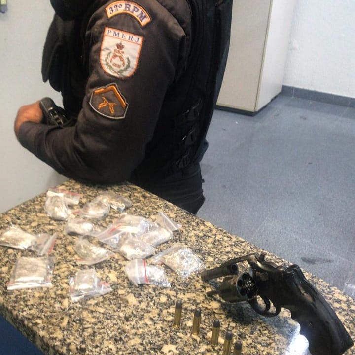 Com ele foram apreendidos um revólver calibre 38 com seis munições intactas, além de 13 tabletes de maconha.