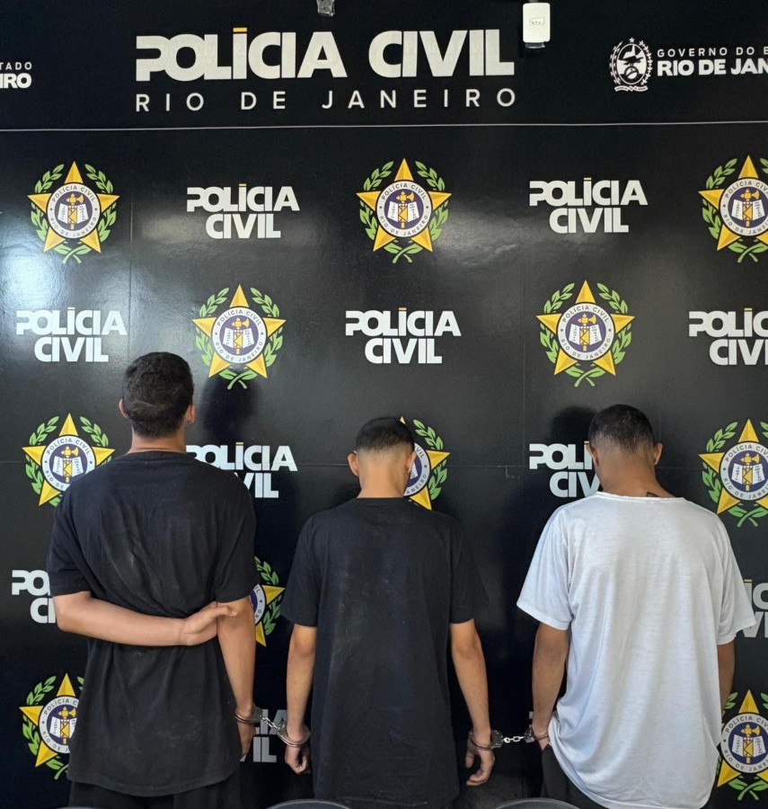 Três integrantes de uma facção criminosa foram presos em Macaé durante uma operação da Polícia Civil. Os criminosos foram capturados no bairro Parque Aeroporto e, de acordo com a polícia, estariam ligados ao Comando Vermelho (CV).