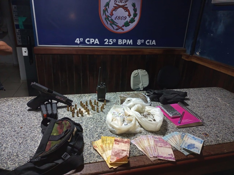 Durante a ação, foram apreendidos 24 pinos de cocaína, 23 buchas de maconha e um tijolo da droga, um rádio transmissor, 26 munições intactas de 9mm, uma pistola 9mm, três carregadores 9mm, uma balança de precisão, um caderno com anotações do tráfico e R$ 249 em espécie.