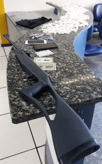 Três homens foram detidos com uma espingarda e 800 pinos de cocaína nesta terça-feira (18) em Aquarius, no segundo distrito de Cabo Frio.