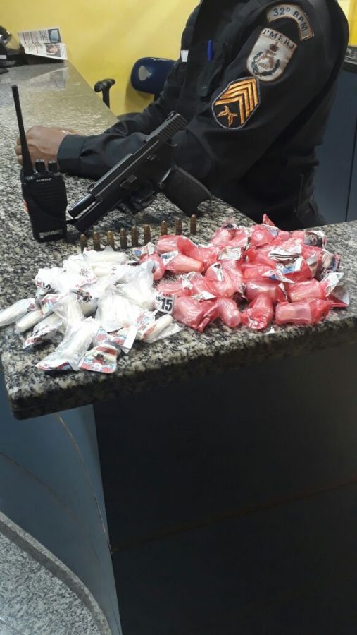 Chegando ao local, os agentes avistaram os três suspeitos e efetuaram o cerco. Eles tentaram fugir, mas foram capturados. Segundo a PM, dois deles foram detidos dentro de um galinheiro. Com o trio, foram arrecadados uma pistola calibre 9 mm, nove munições, um radiotransmissor, 62 pinos de cocaína e R$ 37 em espécie. Parte do material foi encontrado na casa de um dos adolescentes. Ainda de acordo com a PM, os três são apontados como “vapores” do tráfico na localidade.