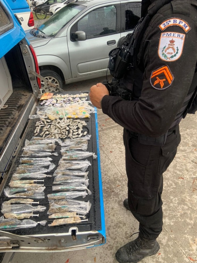 Durante a ação, a PM apreendeu 108 buchas de maconha, 100 pedras de crack, 41 sacolés de cocaína, 57 pinos da mesmo droga, 32 seringas de THC, além de R$ 30 em espécie. O acusado foi encaminhado para a 126ª Delegacia de Polícia (126ª DP), autuado e preso.